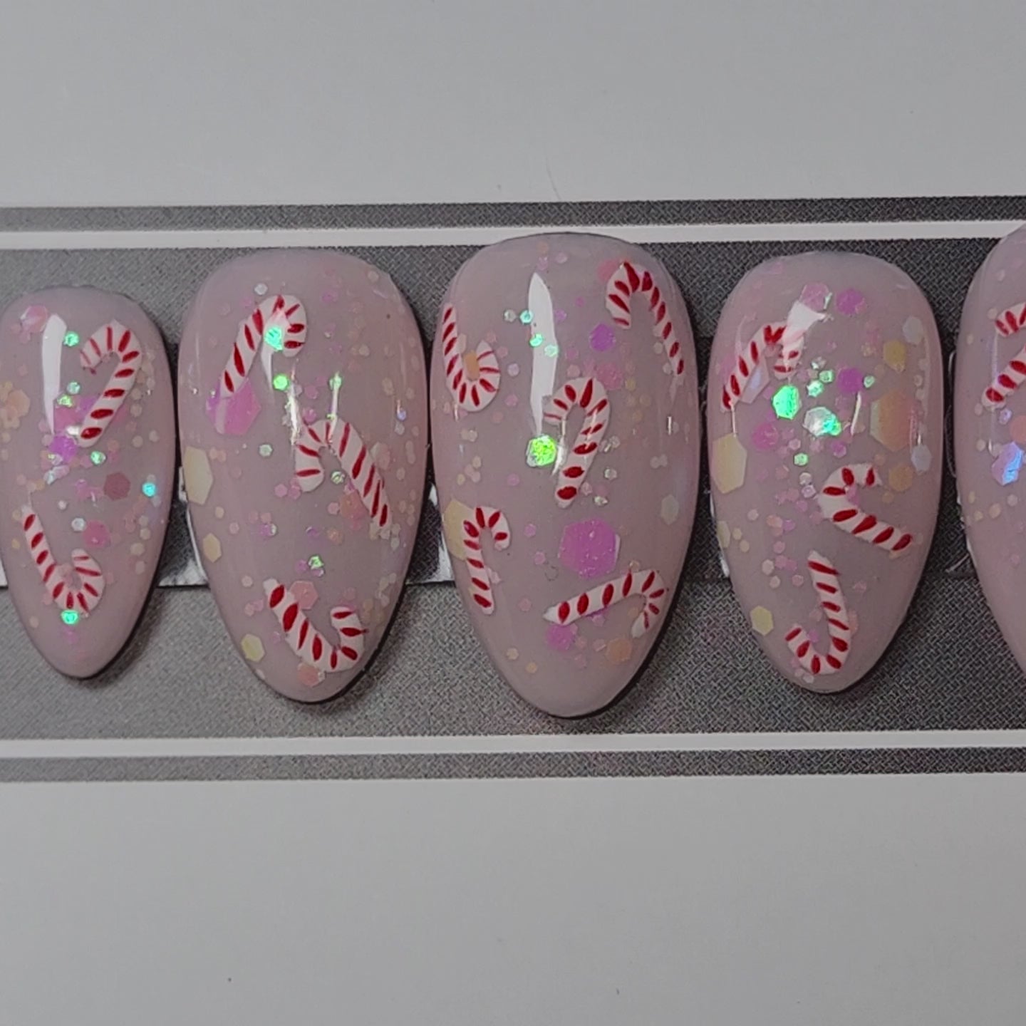 Each set of Luxury Press On Nails features a delicate and festive holiday theme, where the spirit of winter and the holiday season come to life. Picture a soft, enchanting pink as the base color, reminiscent of the rosy cheeks and cheerful merriment that winter brings. The pink serves as a canvas for the magic that unfolds upon it.
