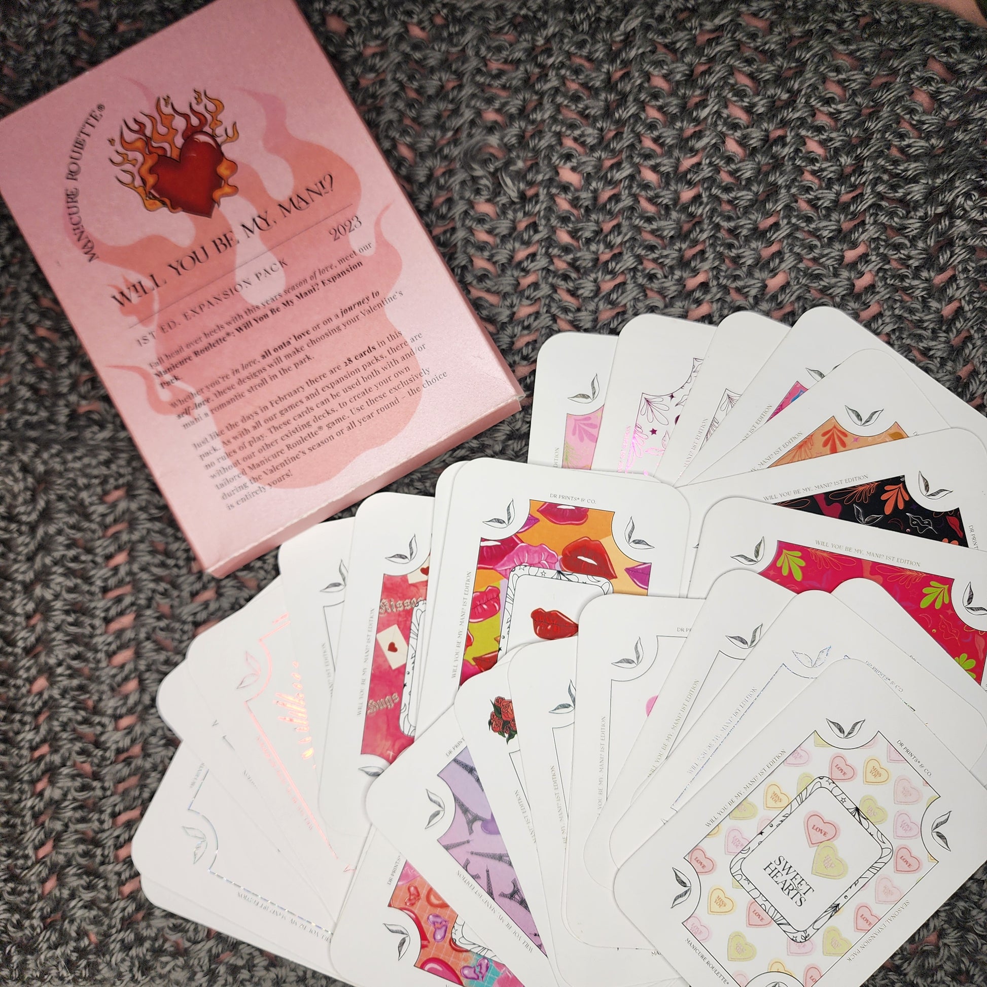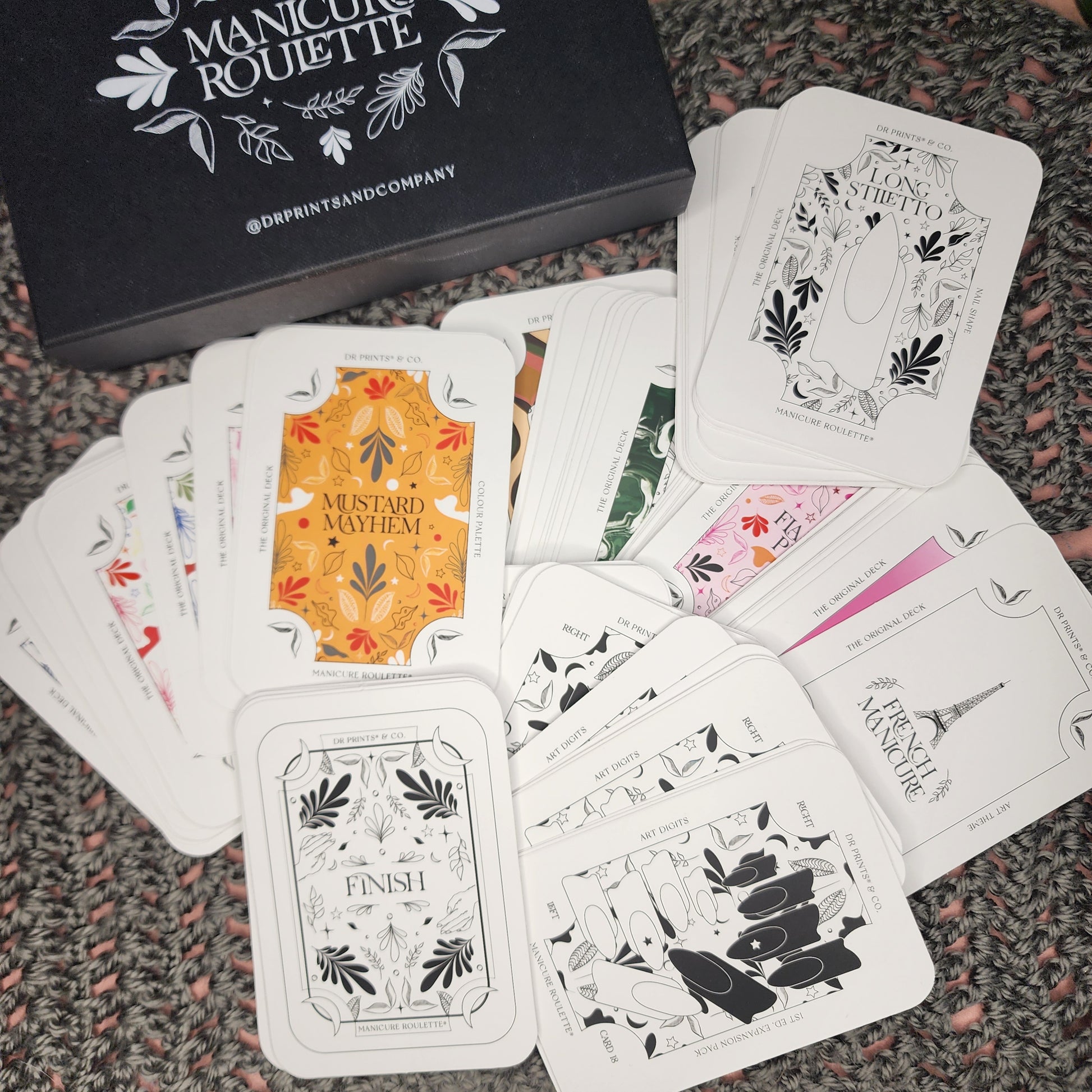 Manicure Roulette Mystery set is just that, a mystery. Pick your design level, nail shape, length and decks to pull cards from. I will pull cards and create a mystery set of nails. You will get a beautiful surprise set, created just for you. Add a little mystery to your life.